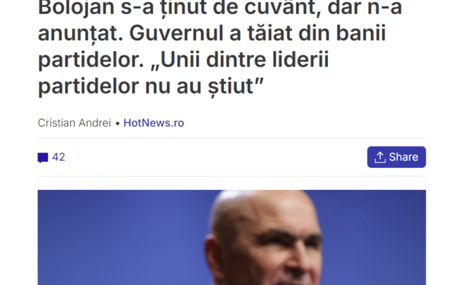 Vestea bună: Guvernul a redus subvențiile partidelor politice cu 17,6%, adică 50 de milioane de lei, prin recenta rectificare bugetară. Măsura n-a fost trompetată în conferințe de presă; a fost observată în anexe, apoi confirmată public. În cifre: alocarea pe 2025 scade de la 284 mil. lei la 232 mil. lei. E un gest de […]