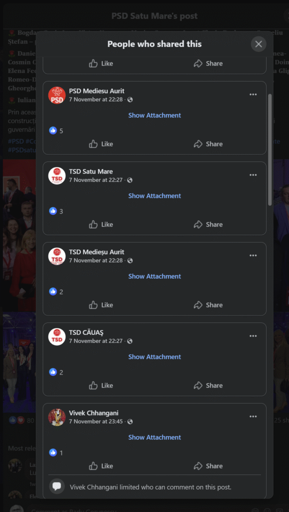 Dacă meri (ardelenism, da?) mai adânc, observi că dl, Chhangani dă share pe bandă rulantă postărilor politice de pe plaiuri sătmărene. Nu pot decât să conchid că indianul Vivek a poposit la Satu Mare și a fost pătruns de spiritul social-democrat, de unitate de nezdruncinat în jurul liderului suprem.