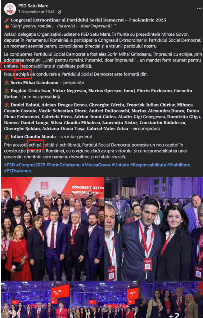 Am preluat la întâmplare una din postările organizațiilor județene de partid, despre echipă și unitate.
