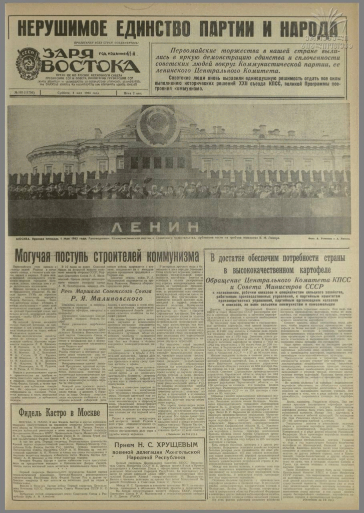 „Unitatea indestructibilă dintre partid și popor” titrează un organ de propagandă sovietic, din Georgia, în 1963. Este încă o dovadă, dacă mai era nevoie, cam pe ce filieră a aterizat în propaganda bolșevică autohtonă nezdruncinarea.