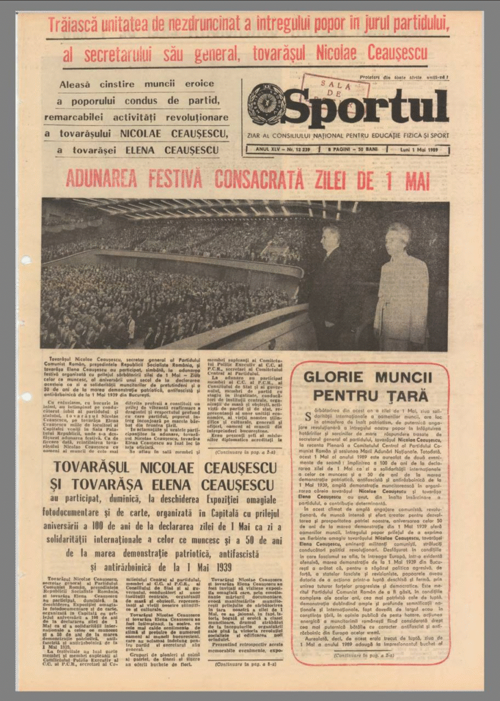 „Trăiască unitatea de nezdruncinat …..” bla bla bla – extras din Sportul din 1 Mai 1989. Mai erau doar câteva luni până când avea să se zdruncine unitatea de nezdruncinat.